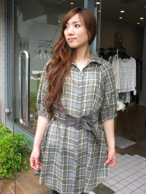 共布のシャーリングベルトを付けるとカワイイワンピに。。。