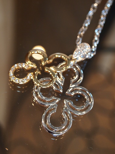 シルバーとゴールドのクロスクローバーがゆらゆらとスイングして