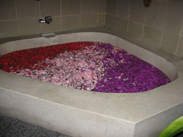 優雅にフラワーバスにつかりながら、アーユルベーダー・ティーを頂きます。