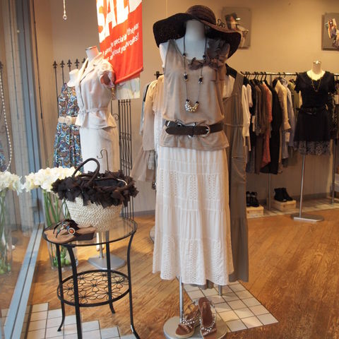 そして、こんな風に涼しげなマキシスカートのコーデで避暑地にお出かけスタイルも素敵でしょ〜。