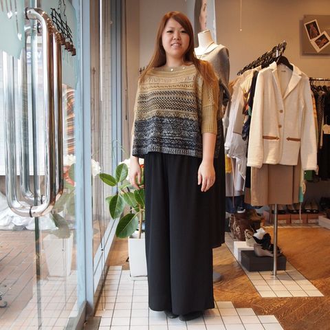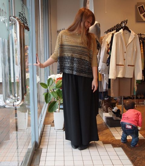 CoombさんのベアトップフレアーパンツにMax|Aさんのボレロにもなる透かし編みニット