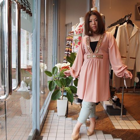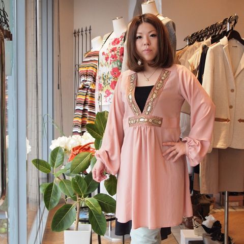 深Vが女らしく淡いピンクがお肌も綺麗に見せてくれますね〜。