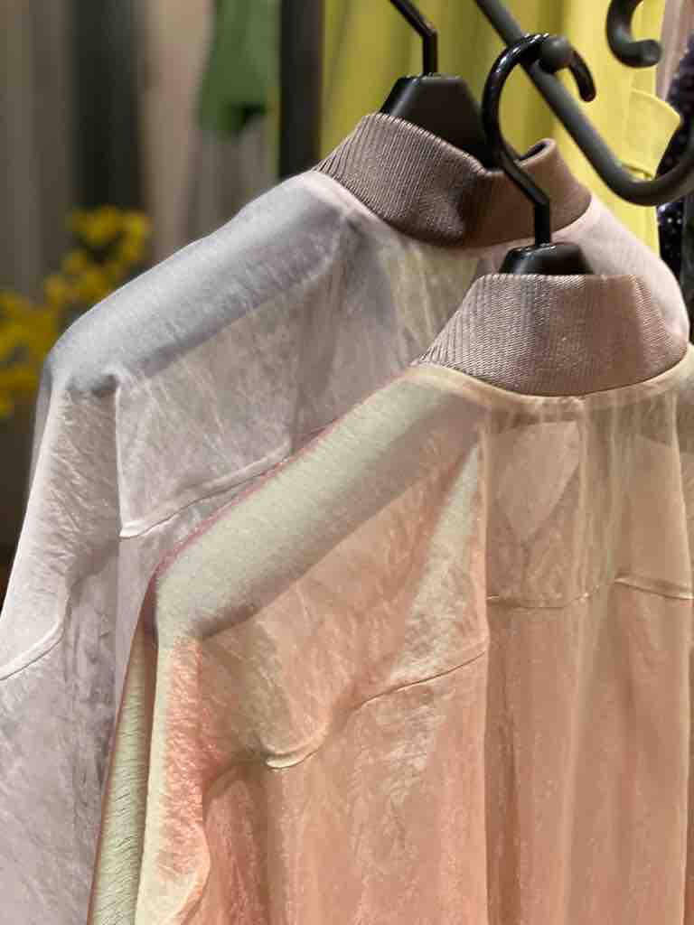 美しい艶感のあるシースールブルゾン