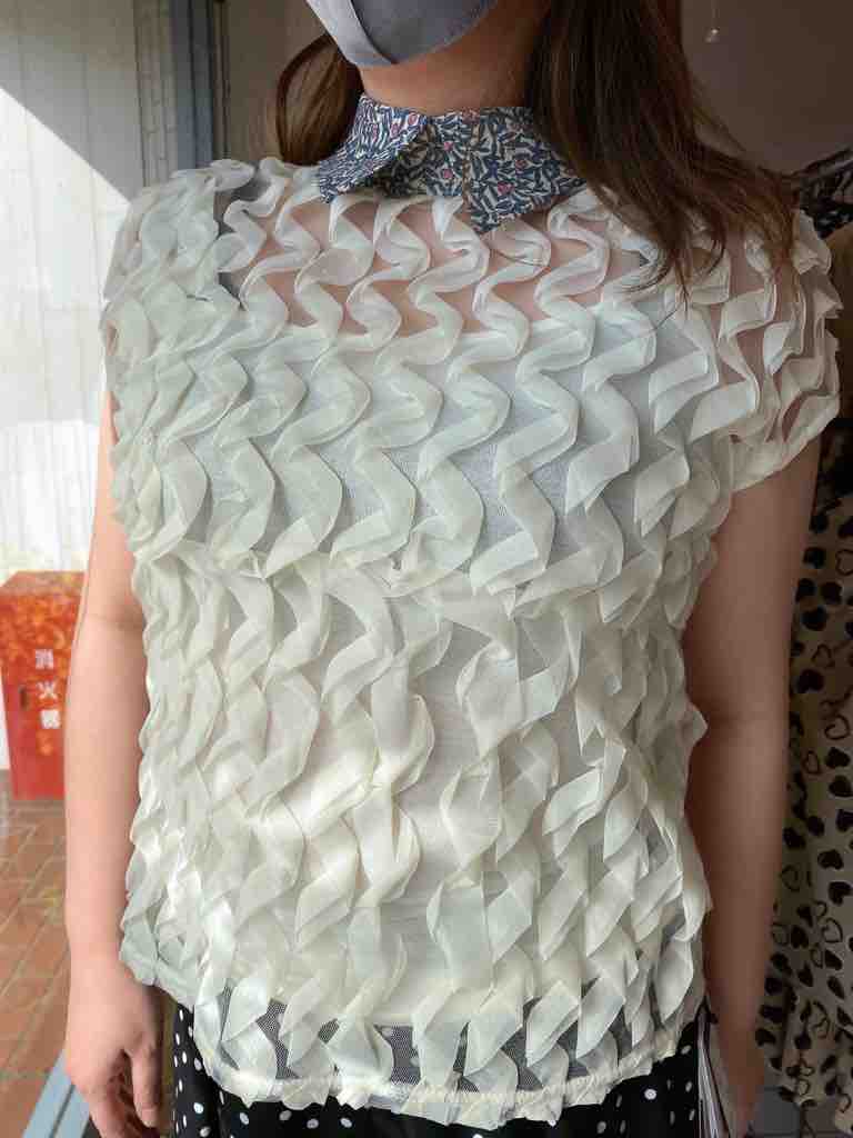 チュールのリボンにプリントシャツ襟がレトロで・・・・新しい感覚です!!