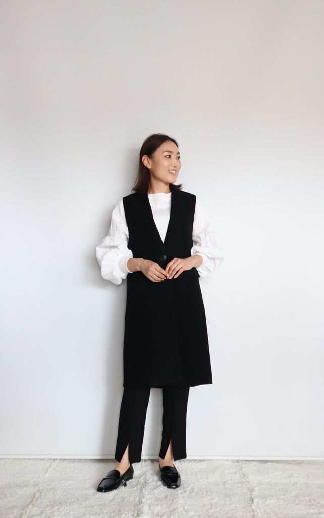 ジレと合わせてレイヤードコーデが素敵