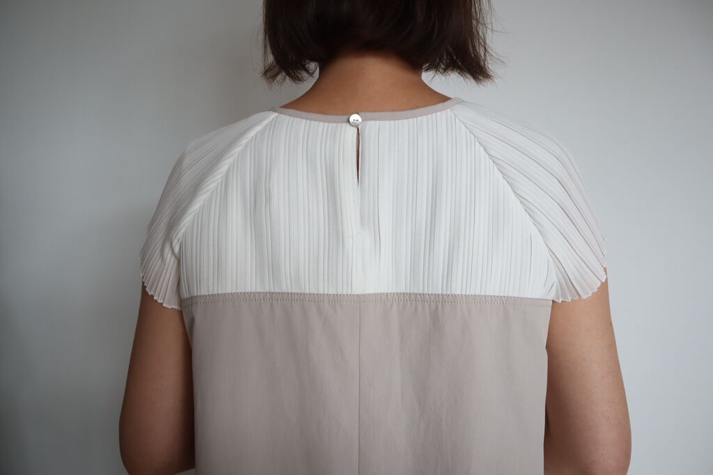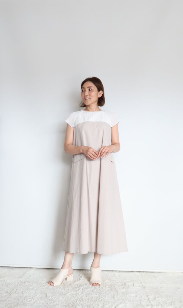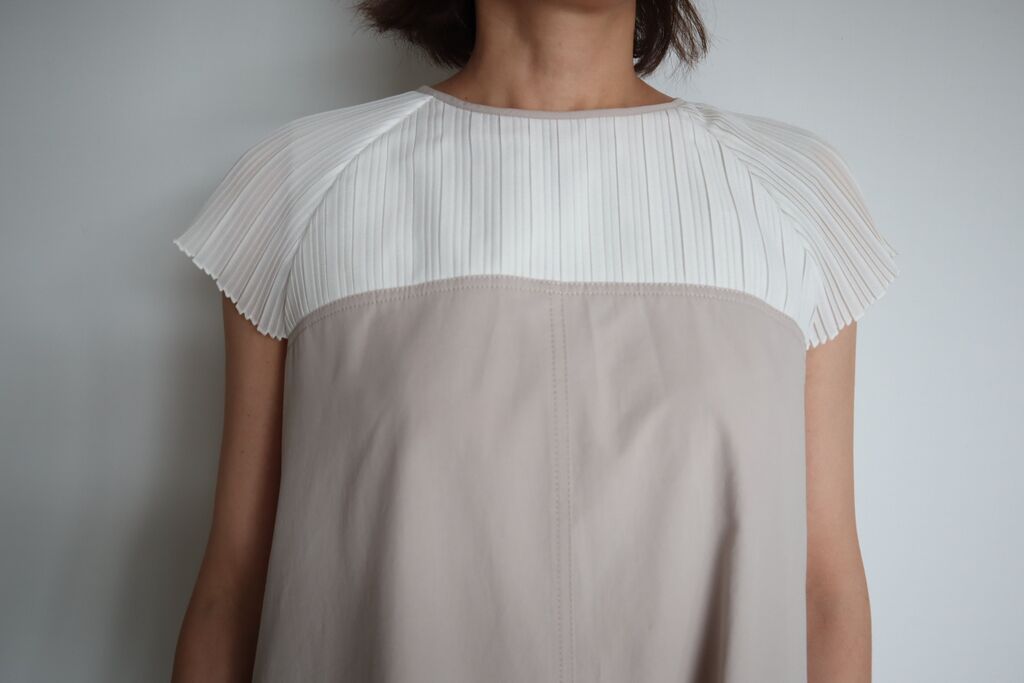 ショルダー部分のプリーツの切り替えと軽やかなタイプラーターワンピースです