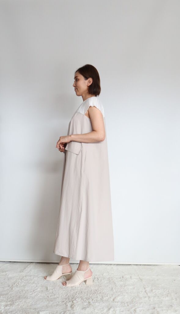 体型もカバーしつつ大人可愛く涼しいお顔でお出掛けしていただけるオススメの一枚です。