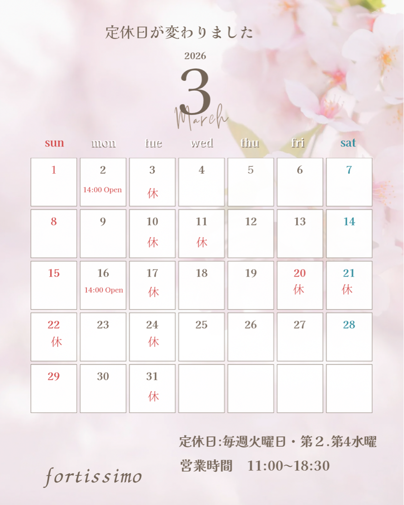 ※3月は三連休(3/20〜3/22)をお休みさせていただくため、
